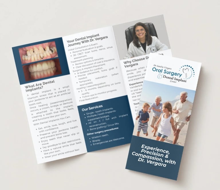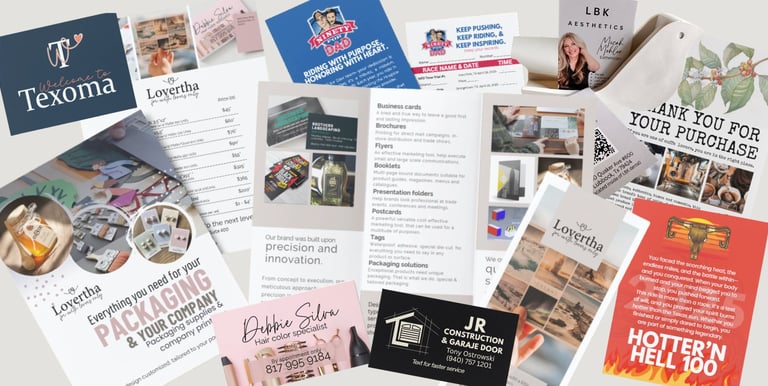 We design and print business cards, brochures, and custom marketing materials.